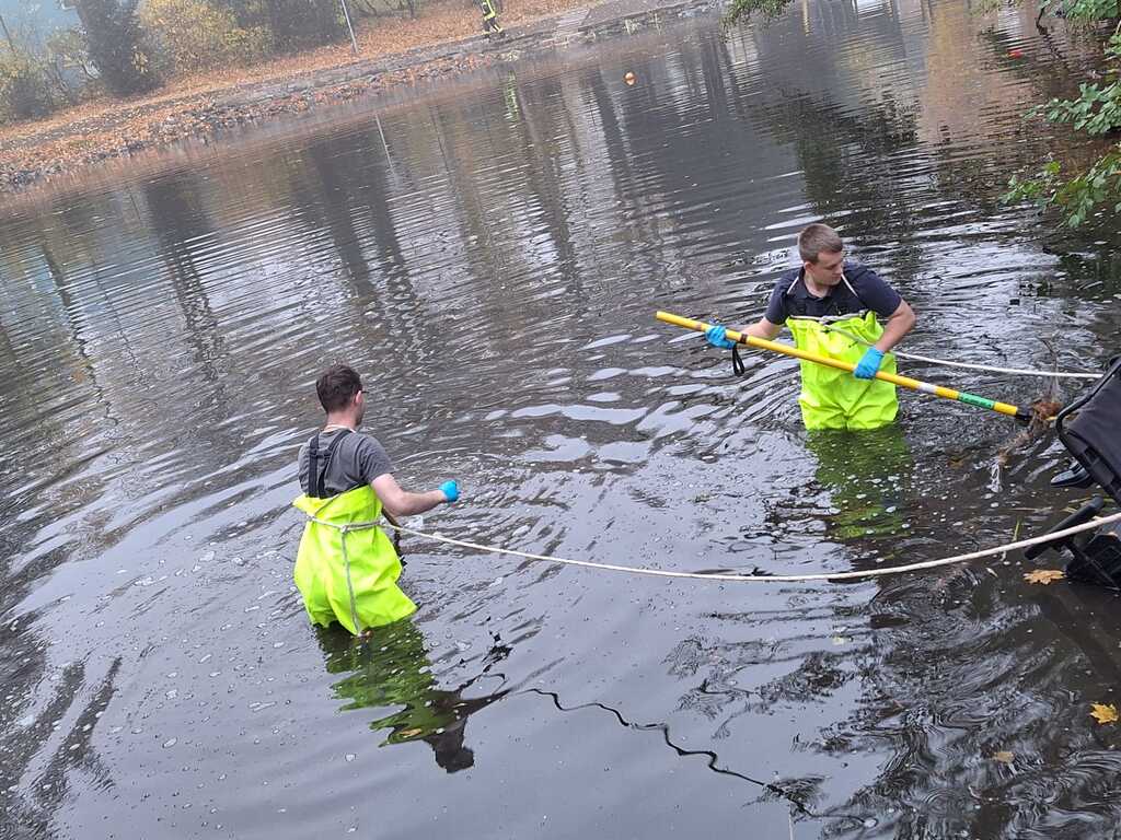 Der Elektrorollstuhl wurde aus dem Ziegenteich gezogen. Zudem konnte weiteres Material aus dem Ziegenteich an die Polizei übergeben werden. Einsatzende war um 09:00 Uhr.