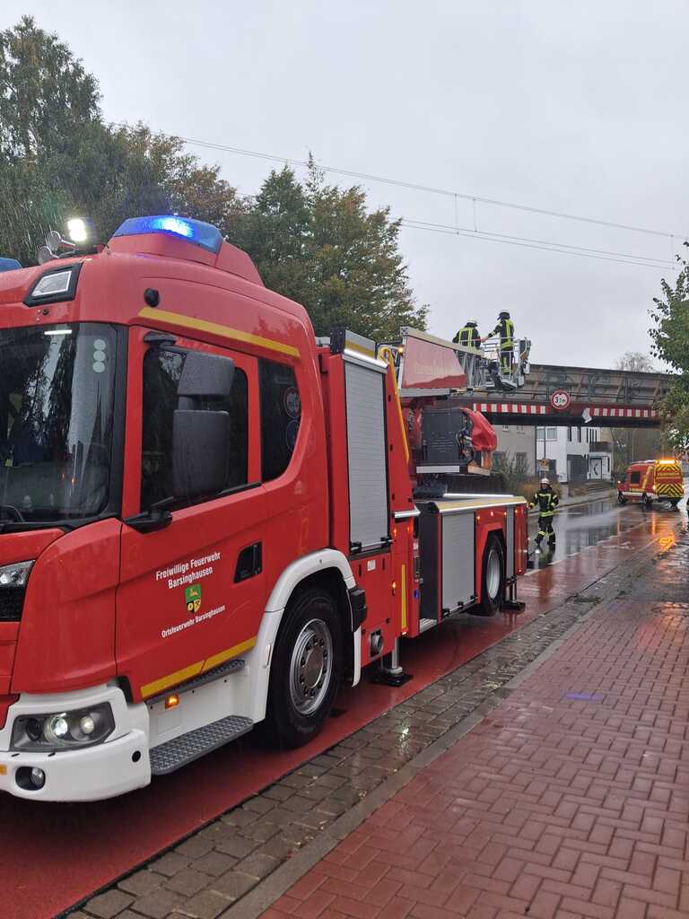 An der Bahnbrücke der Hannoversche Straße hatte sich die Warnmarkierung der Höhenbegrenzung gelöst und wehte umher. Auch hier kam erneut die Drehleiter zum Einsatz, mit einer Säbelsäge wurde der umherwehende Teil der Warnmarkierung abgesägt. Einsatzende war um 10:20 Uhr. Hier wurde ebenfalls die Straße während der Maßnahmen kurzzeitig gesperrt.