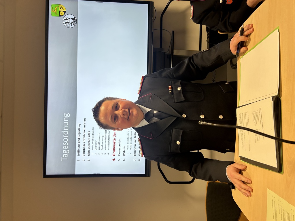 Zum Abschluss gab der Ortsbrandmeister einen Ausblick auf anstehende Projekte. Für die Beschaffung eines neuen Rüstwagens wurde eine Arbeitsgruppe eingerichtet. Ziel der Arbeitsgruppe ist es, die Anforderungen an das Fahrzeug zu definieren und die Bestellung bis zum Ende des Jahres vorzubereiten.