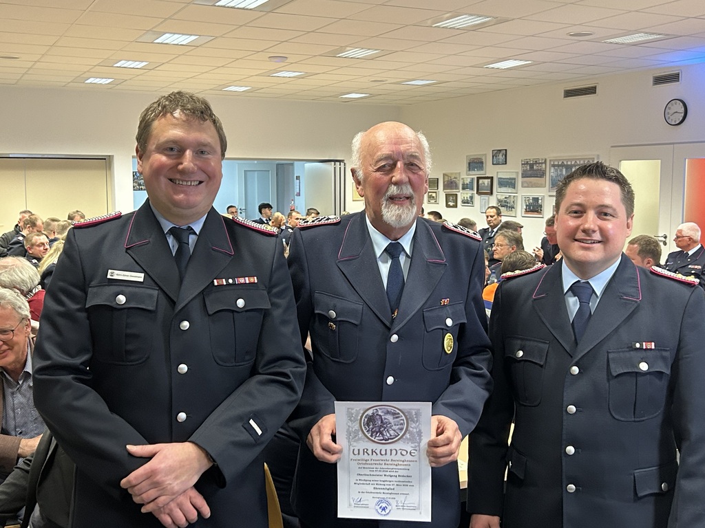 Mit dieser Auszeichnung würdigt die Ortsfeuerwehr seine langjährigen Verdienste und sein besonderes Engagement für das Feuerwehrwesen. In einer kurzen Ansprache wurde sein Einsatz für die Feuerwehr sowie seine Verbundenheit zur Ortsfeuerwehr hervorgehoben.