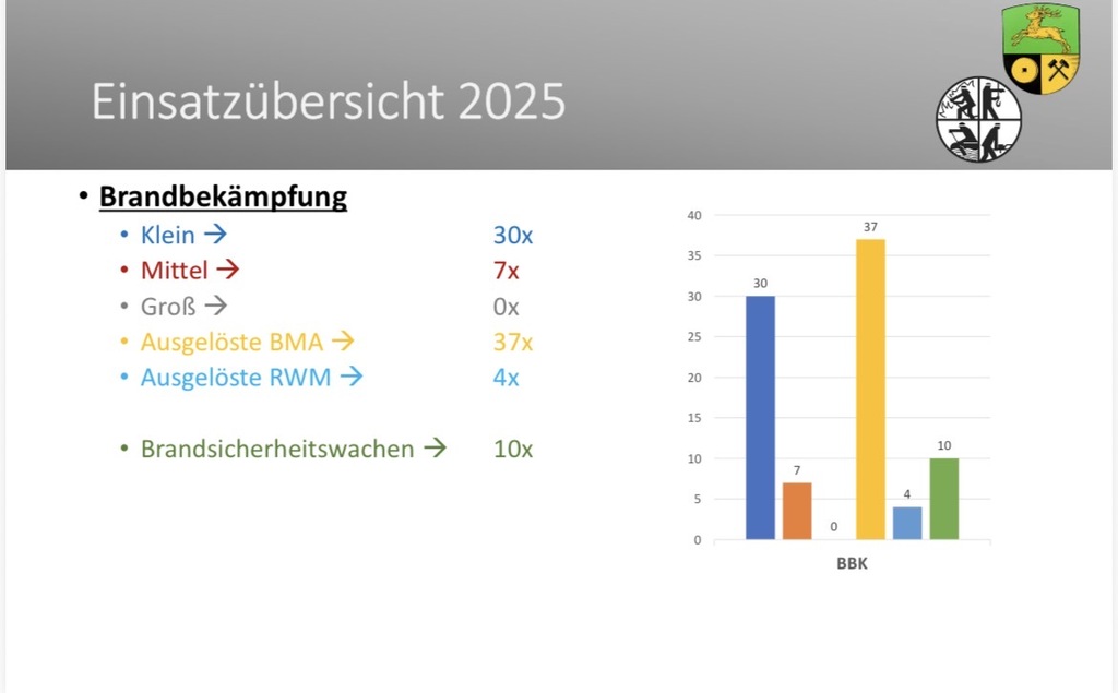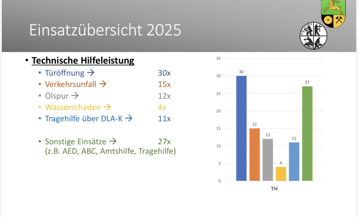 Ein weiterer Schwerpunkt lag auf der Ausbildung. Im Berichtsjahr wurden ein neues Tanklöschfahrzeug und eine neue Drehleiter in Dienst gestellt. Die Einsatzkräfte wurden intensiv an den neuen Fahrzeugen und Geräten geschult. Dadurch konnten beide Fahrzeuge schnell in das Einsatzgeschehen integriert werden. Ein besonderer Dank galt den Ausbildern, die mit großem Engagement die Schulungen und Übungsdienste durchführten und so einen wichtigen Beitrag zur Einsatzbereitschaft leisteten.