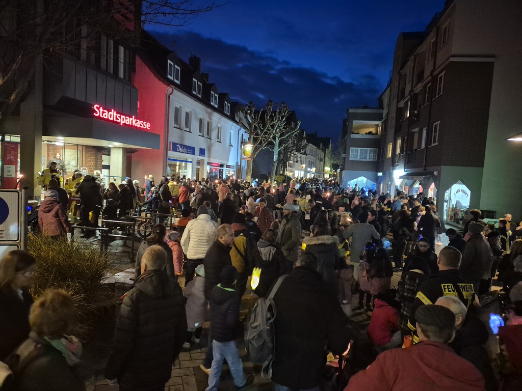 Die Feuerwehr begleitete den wohl größten Laternenumzug in der Innenstadt mit 17 Feuerwehrangehörigen und fünf Fahrzeugen.