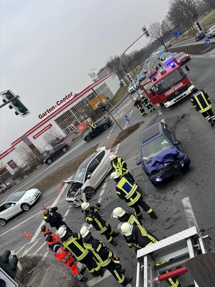 Bei Eintreffen der Einsatzkräfte waren die beteiligten Personen bereits aus ihren PKWs befreit und wurden rettungsdienstlich versorgt. Die Feuerwehr sicherte die Einsatzstelle ab, stellte den Brandschutz sicher und klemmte die Fahrzeugbatterien ab.