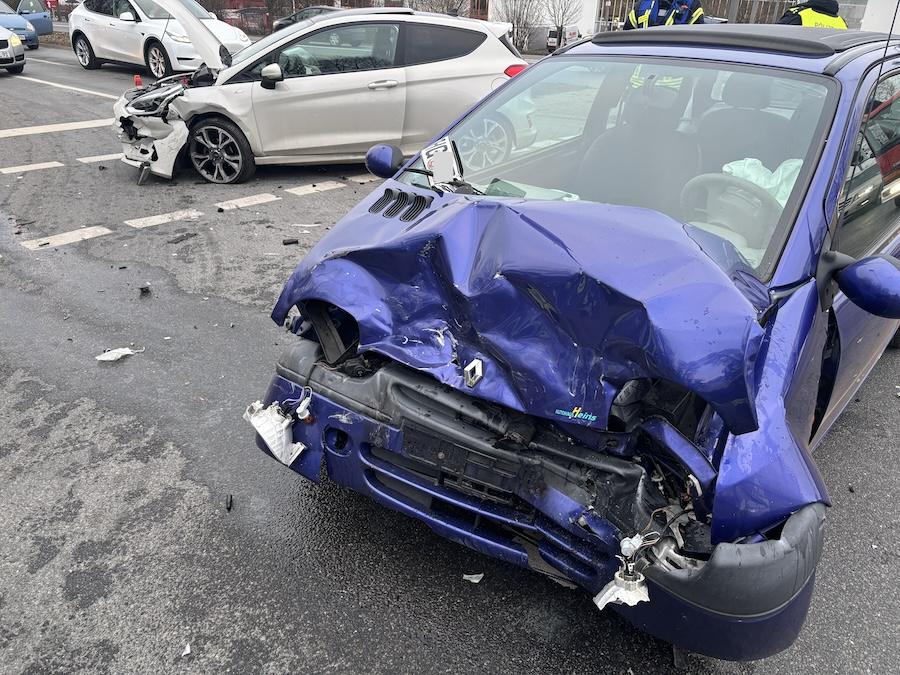 An der Kreuzung von B442 und B65 waren zwei Kleinwagen verunfallt, woraufhin die Regionsleitstelle aufgrund zunächst unklarer Lage auch die für diesen Bereich zuständige Feuerwehr anforderte.
